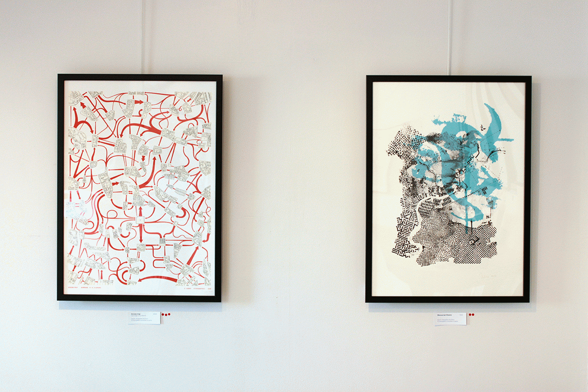 Cette exposition propose quatorze grands formats infographiques qui sont des extensions, des continuités, ou des contextualisations de cartes du Cahier de Travaux Pratiques en Utopographie. C’est une relecture des dessins initiaux, qui les extirpe du cahier relié et qui leur donne plus d’autonomie ; une sorte d’irréalité augmentée. Cela permet de tester encore et toujours le potentiel narratif du dessin cartographique, de créer des confusions visuelles ou permet simplement de rendre hommage à Guy Debord, au jazz et aux cartes marines du SHOM.