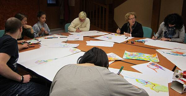 «Dans le cadre de viva-cités, la bibliothèque de Champs Libres souhaitait proposer une approche artistique du territoire. Avec l’artiste plasticien Clément Aubry, 6 bibliothèques et médiathèques de Rennes Métropole ont invité les habitants à créer leur carte imaginaire de l’agglomération. Cette crétion collective s’est faite lors d’ateliers d’art plastique entre avril et juin 2012 dans les communes d’Acigné, Betton, Parthenay-de-Bretagne, Le Rheu, La Chapelle-des-Fougeretz et Montgermont.»