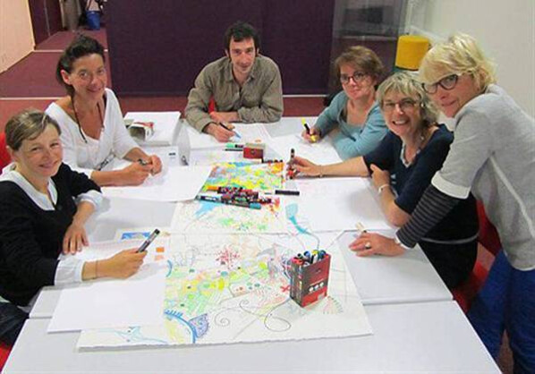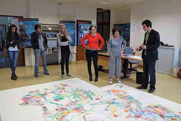 Réalisation d’une carte utopographique de Rennes Métropole avec 40 habitants de 6 communes de Rennes Métropole sur une invitation de la bibliothèque des Champs-Libres.